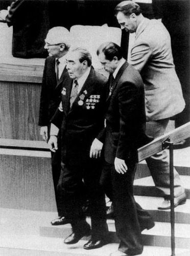 Леонид Ильич Брежнев бодро спускается с трибуны